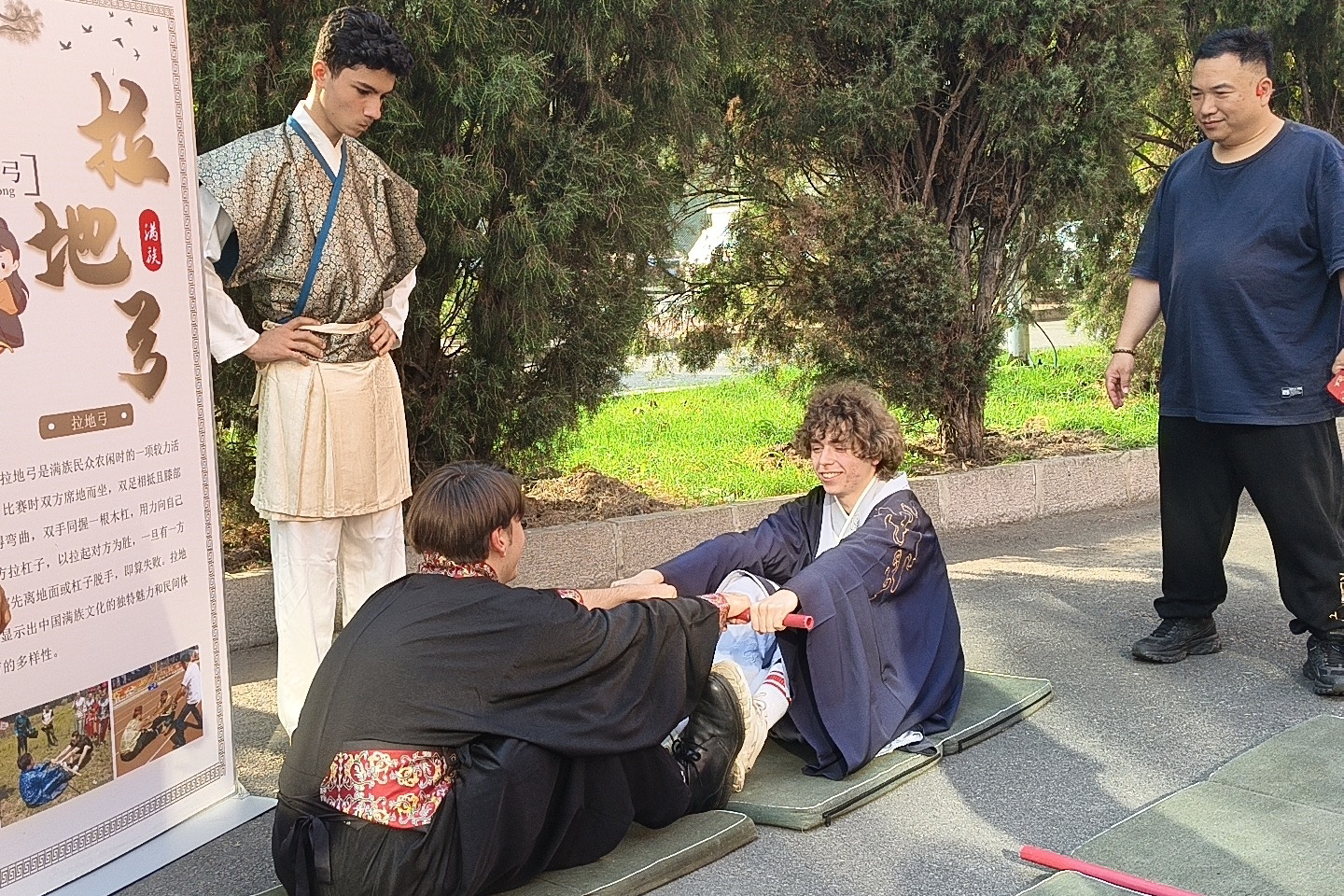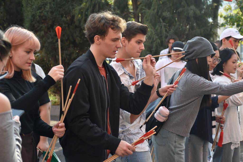 本次联谊活动特意安排了在室外进行的体育户外项目。留学生们积极参与了踢毽球、投壶、高跷、拉地弓等传统游戏,体验了中国传统体育项目的独特乐趣。