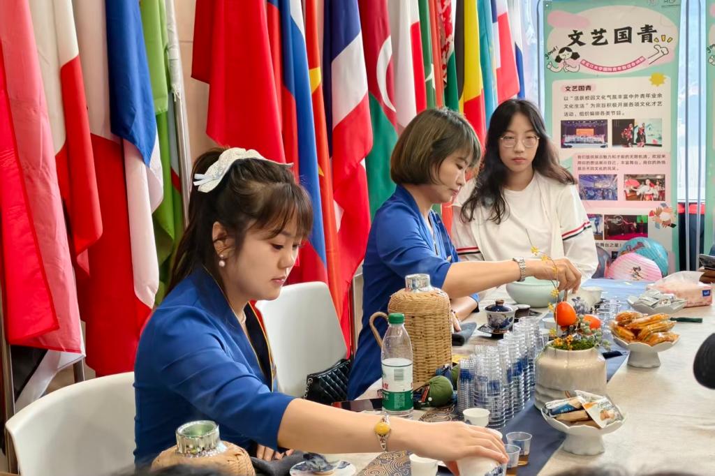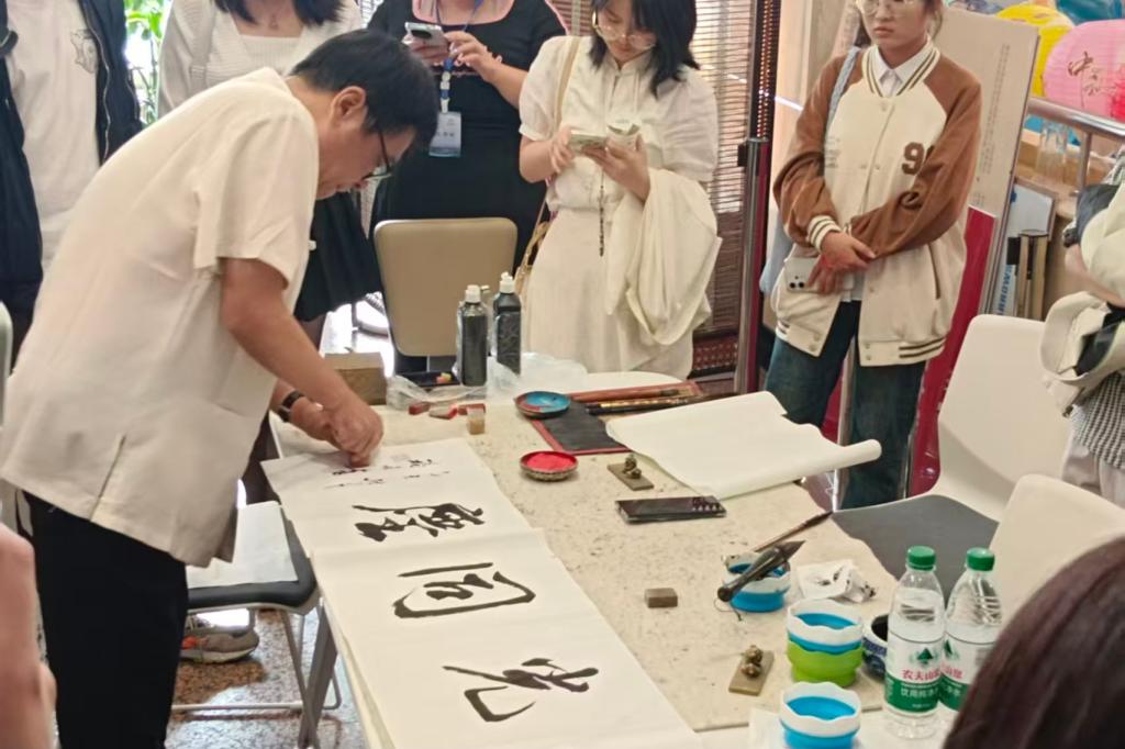 在国际文化教育学院一楼传统文化体验区,书法、汉服、茶艺等中华传统项目也吸引了大量参与者,大家纷纷动手尝试深刻感受到了中华传统文化的深厚底蕴。