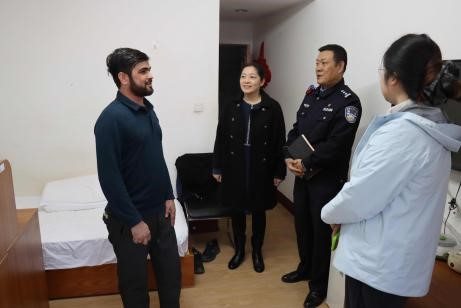 为切实保障留学生居住安全,强化宿舍安全管理,10月24日下午,黑龙江大学国际文化教育学院组织开展留学生宿舍安全大检查专项行动。学院院长姜涛、留学生办公室负责人及国际留学生辅导员、留学生公寓负责人与哈西派出所外事民警宋勇警官组成联合检查小组,重点对留学生公寓1号楼、3号楼进行全面安全巡查。
