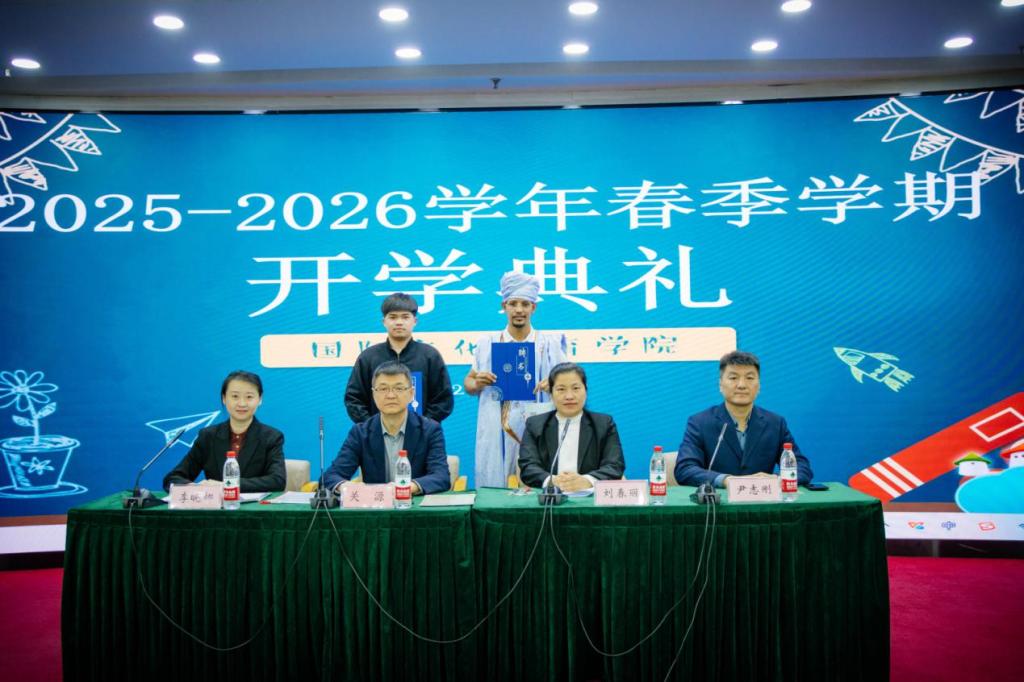 3月25日,黑龙江大学国际学生2026年春季学期开学典礼现场暖意融融,国际文化教育学院正式为毛里塔尼亚籍2023级硕士研究生ETHMANE TEYEB、柬埔寨籍2025级本科学生TONG SOK颁发“国际学生招生宣传大使”聘书,助力学校海外招生工作提质增效,持续擦亮“留学黑大”国际化品牌。