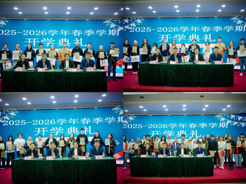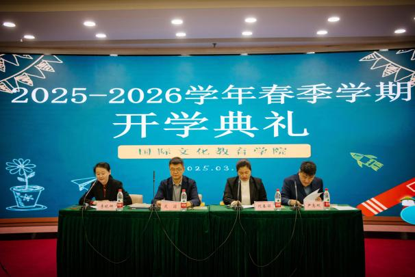 3月25日下午,国际文化教育学院举办2025-2026学年春季学期来华留学生开学典礼。学院副院长关源、对外汉语教育系主任刘春丽、教务办公室主任尹志刚、留学生办公室主任肖波以及各相关科室负责人及新老留学生350人参加典礼。留学生招生办公室主任李晓娜主持典礼。