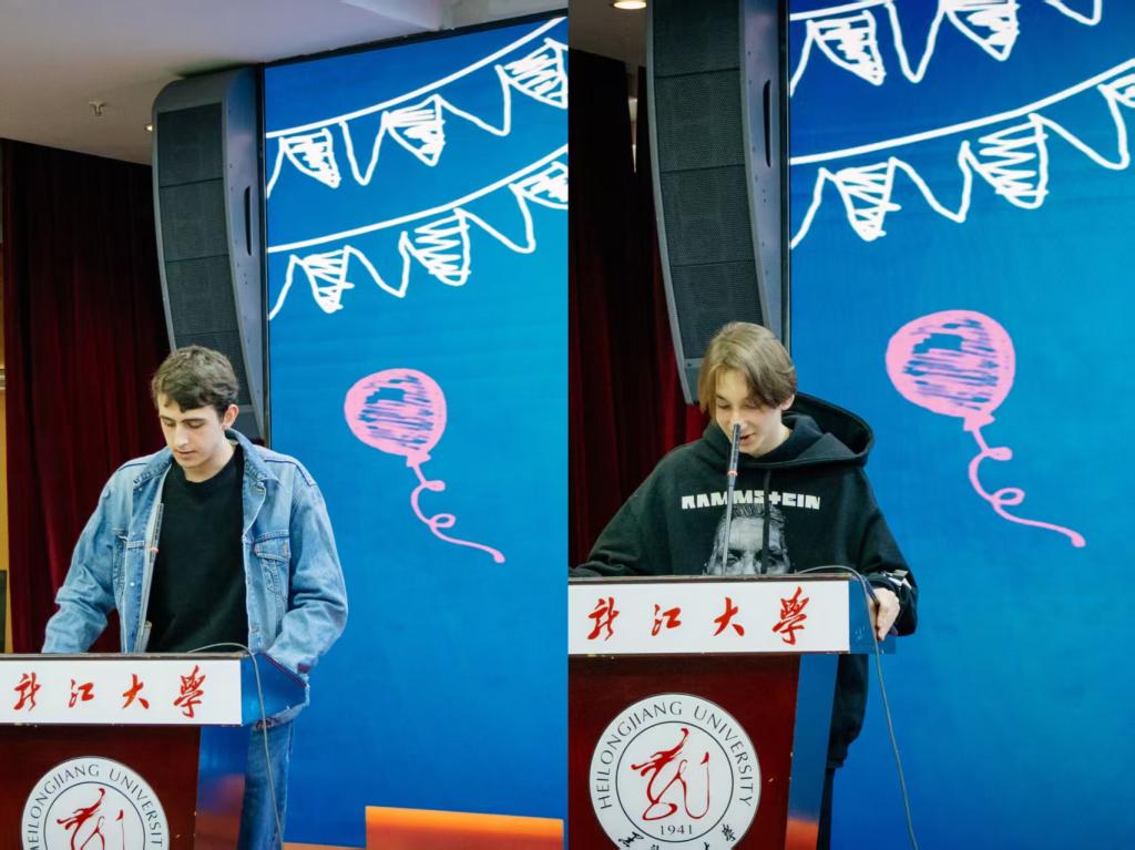 中国学生代表黑大国际青年联谊会负责同学周玉超在发言中对留学生新同学的到来表达了欢迎并期待本学期内中外同学开展更多友好交流活动。黑龙江大学国际文化教育学院王佳琳老师在开学典礼寄语留学生:“欢迎大家跨越山海来学汉语,虽会遇挑战,但学院师生会伴大家同行。”她分享碎片化学习、大胆犯错等实用方法,鼓励大家多借助身边资源,坚持输出与书写。也希望大家课上学习、课下多体验中国文化与生活,成为中外交流使者,愿大家“慢慢来会更好”,在中国制造美好回忆。