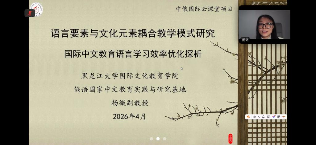 杨微副教授应邀在“汉语:语言教学法热点问题”培训班上授课,课程题目为《语言要素与文化要素耦合教学模式研究》。讲授内容基于汉俄语言比较,系统分析汉语各语言要素特点,构建语言要素与文化元素耦合共叙的国际中文教学模式。此教学模式在帮助学习者提高汉语学习效率的同时,也将中华文化融入到语言教学之中,以润物无声的沁润方式将中华文化传播出去。